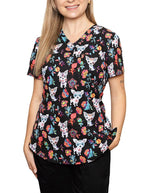 This Halloween-inspired V-neck print top showcases a sleek, feminine silhouette, featuring a chest pocket, a slightly curved hem, and side vents for effortless movement. Modern Classic fit with a center back length of 26 inches.