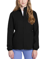 From workdays to weekends, this versatile zip-front anorak jacket features a collared neckline, cinched waist, and a stylish high-low hem. Shoulder panels include tonal triple-needle stitching and a flat bungee for an ID badge on the right side. It offers in-seam side pockets, elastic sleeve hems, rounded side vents, and tonal topstitching. Modern Classic fit; 27" back length.