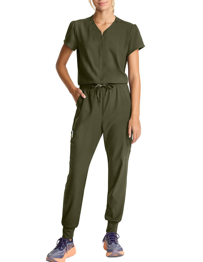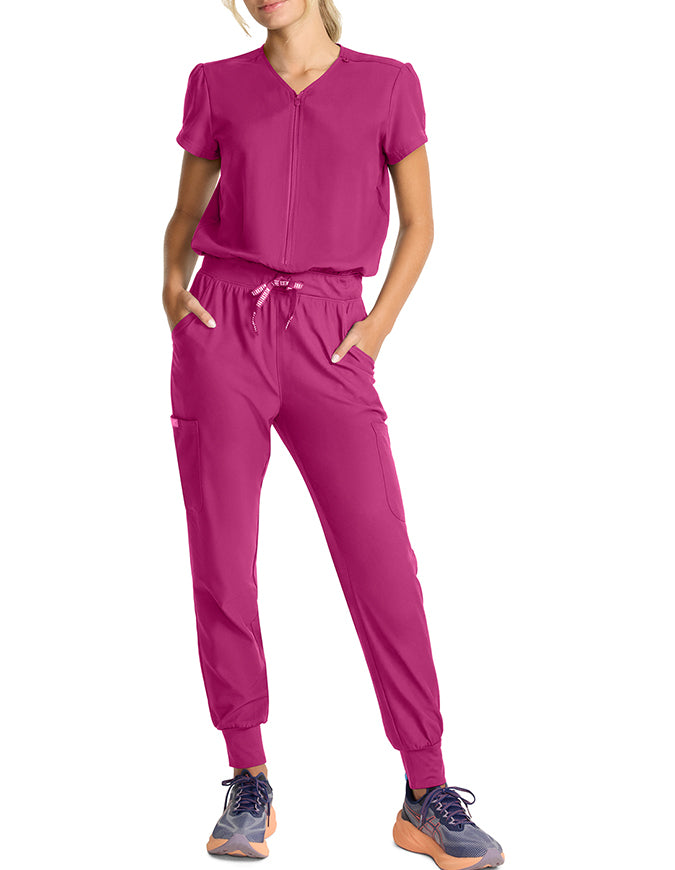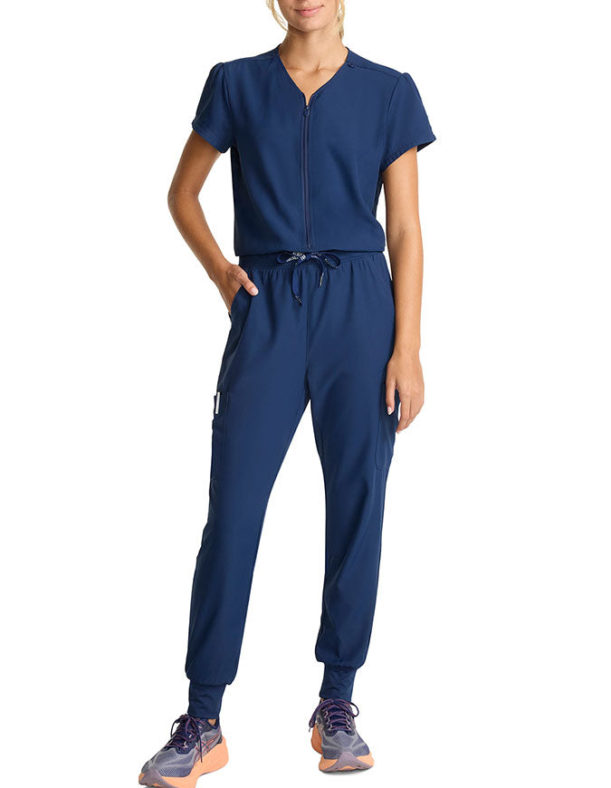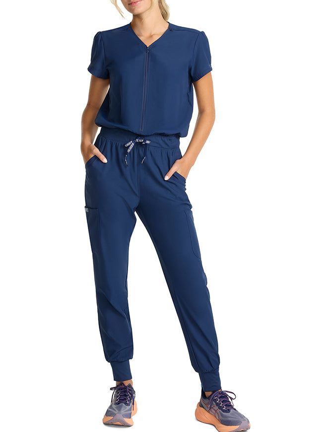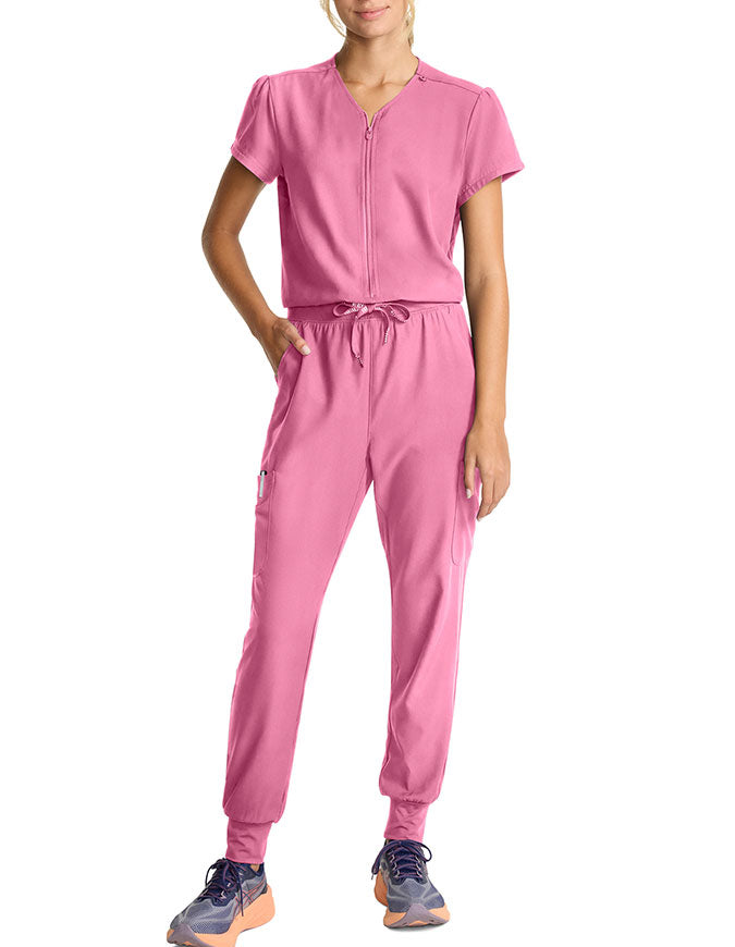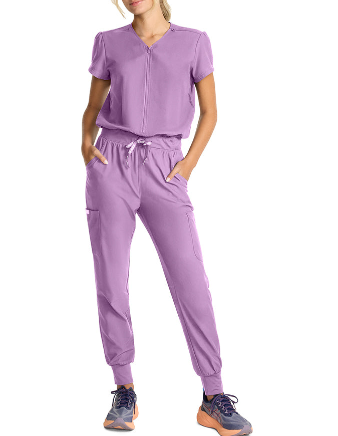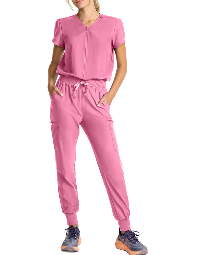 Med Couture Insight Women's 4-Pocket Zip Front Drawstring Scrub Jumpsuit