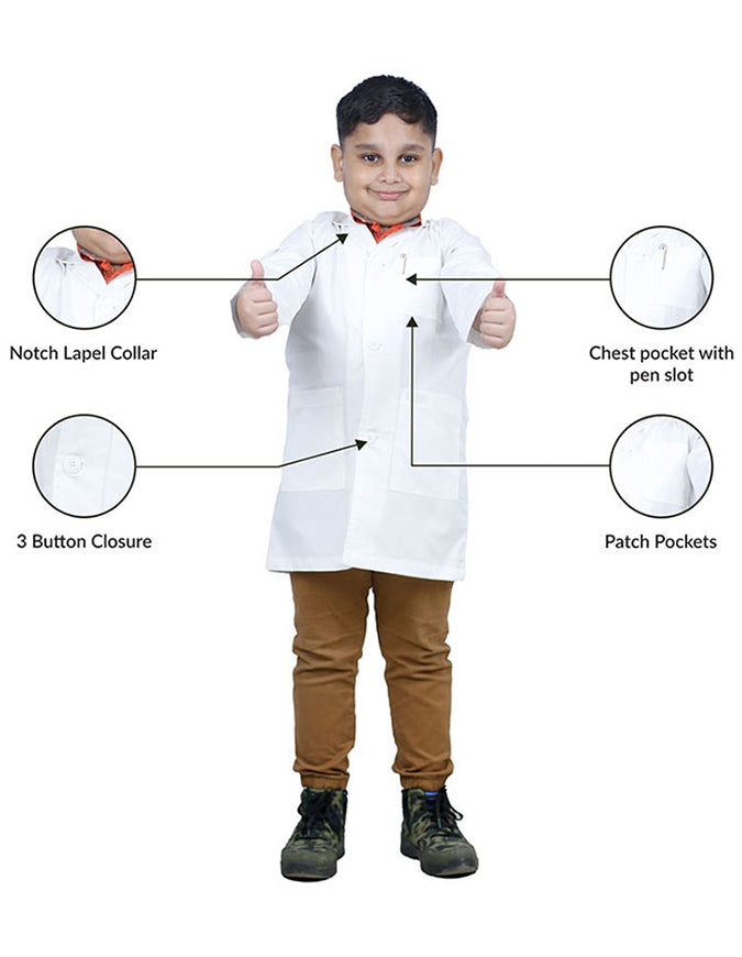 Shop HeedFit Children White Lab Coat at low price. Give your little munchkins a professional and impressive look with HeedFit Children White Lab Coat. Perfect to wear to your science fares and labs, the lab coat can be worn by both – girls and boys.