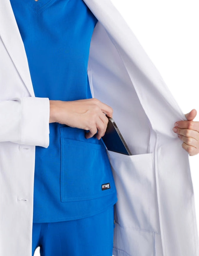 Experience the perfect blend of professional style and practicality with the Barco Women's Merit 30" 3-Pocket Lab Coat. Designed with a modern fit, a classic notch lapel collar, and a 3-button front closure, this lab coat offers both elegance and functionality. It features three handy pockets—two front patch pockets and a hidden interior slip pocket with pen slots—making it ideal for everyday use.