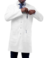 Crisp clean and impressive the Adar Unisex 36 inch Snap Front Lab Coat is all you need. With a standard lapel collar and easy to wear snap closure you get performance. With a back yoke and seams throughout feature tonal triple needle top stitching and two large patch pockets are enhanced with a smaller sectioned pocket the lab coat is a must have.