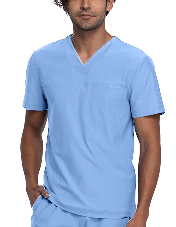 This men’s V-neck scrub top offers a sleek front yoke seam and an in-seam chest pocket. Designed with angled back seams to enhance shape, it includes hidden power mesh at the back yoke and underarms for better airflow and comfort. Stylish tucked or untucked, it features a modern fit with a 28" center back length.