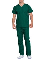 Experience comfort and practicality with our Unisex Modern Fit scrub set, designed for everyday medical wear. This set includes a relaxed V-neck top and easy pull-on drawstring pants, both offering a roomy fit and multiple patch pockets for storage. Top length: 28.5", leg opening: 18", and pant inseam: 31". Ideal for all-day movement.