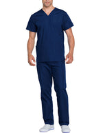 Experience comfort and practicality with our Unisex Modern Fit scrub set, designed for everyday medical wear. This set includes a relaxed V-neck top and easy pull-on drawstring pants, both offering a roomy fit and multiple patch pockets for storage. Top length: 28.5", leg opening: 18", and pant inseam: 31". Ideal for all-day movement.