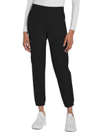 This stylish jogger offers a Modern Classic fit with a mid-rise pull-on design and an internal drawstring for a custom fit. The elastic waistband at the sides and back ensures a secure feel. With five functional pockets, including cargo and back pockets with trim detailing, it features front leg seams, tonal stitching, and tapered legs with elastic hems.