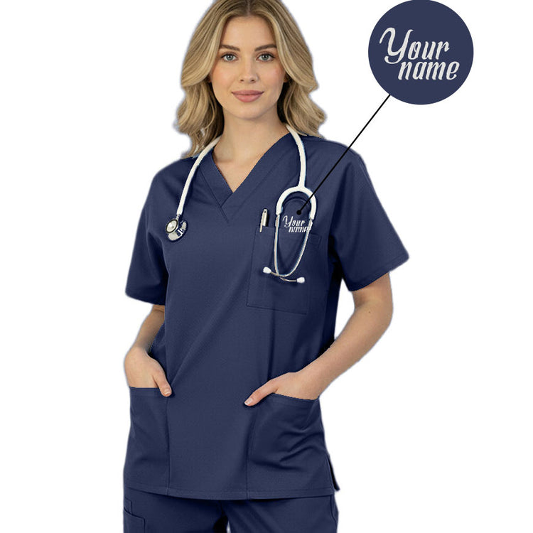 Free Embroidery HeedFit 27.5 Inch Unisex Four Pocket Scrub Top