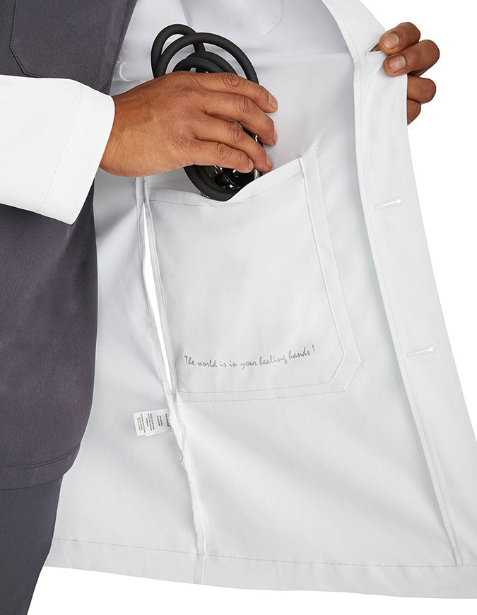 Experience all-day comfort and professional style with the Healing Hands 5151T Luke Tall Lab Coat. Designed for functionality, this classic lab coat features a notched lapel and a convenient snap-front closure for easy wear. Side seam pocket slits provide quick access, while the back waistband and vent offer enhanced comfort and flexibility throughout your busy day. With three roomy outside pockets—including dedicated cell phone pockets—and two inside pockets, you’ll have all the storage you need right at your fingertips.