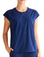 Refresh your workwear with the Jayden Leopard Jacquard Scrub Top from Healing Hands Purple Label. Designed to make a bold statement, this top features a chic leopard jacquard pattern and a trendy zip collar that adds a modern touch to your professional look. Crafted with performance fabric and a modern oversized fit, it blends fashion, comfort, and functionality seamlessly—perfect for long shifts or busy days.