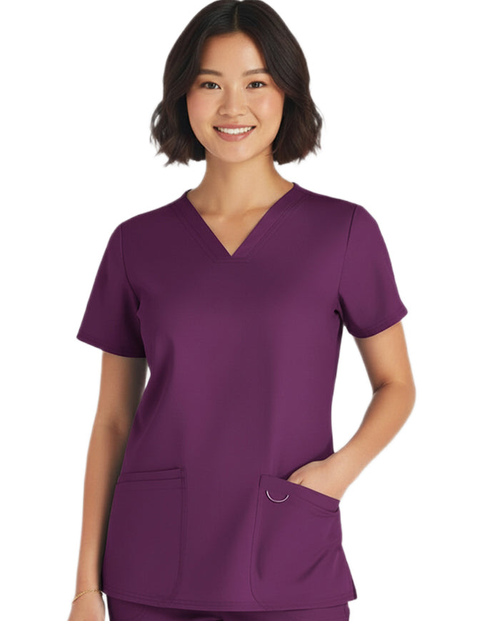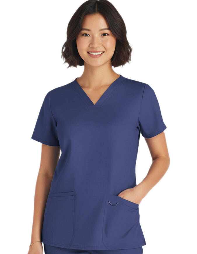 HeedFit Women's V-Neck Nursing Scrub Top with Three Pockets