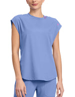 This Missy fit round neck tuckable top combines function and style with rib-knit neckband trim, dolman sleeves, and inset detailing. Designed for convenience, it features a bungee ID loop, two secure zippered pockets—one at the shoulder seam for earbuds and one at the side seam. A rib-knit back yoke, locker loop, and rounded hem ensure comfort, style, and practicality. Center back length: 25".