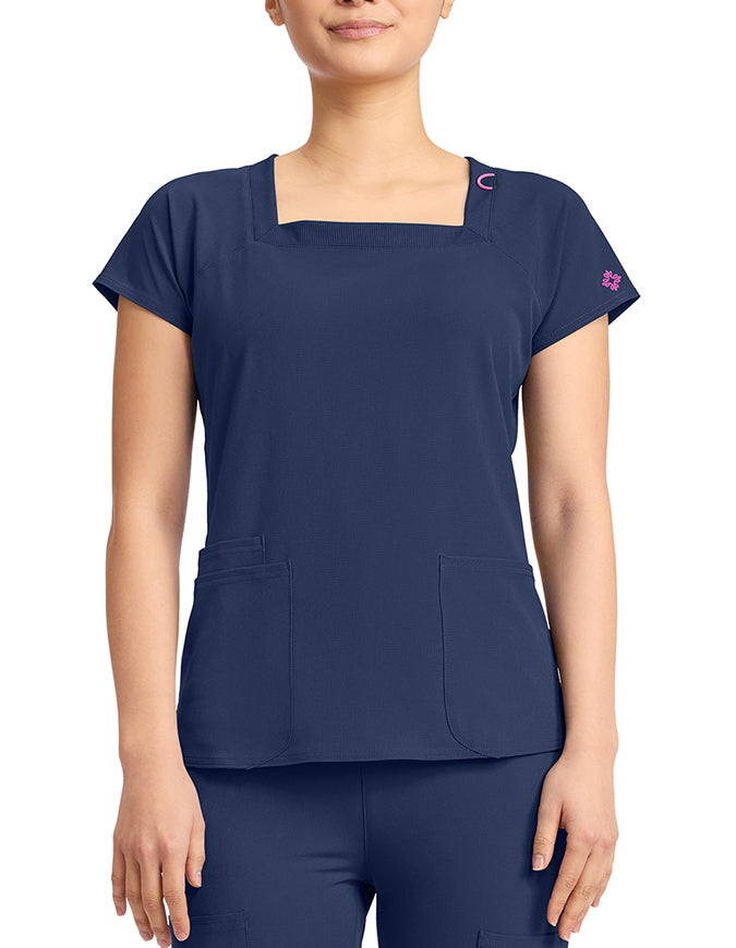 Med Couture Amp Women's 3-Pocket STRETCH Square Neck Scrub Top