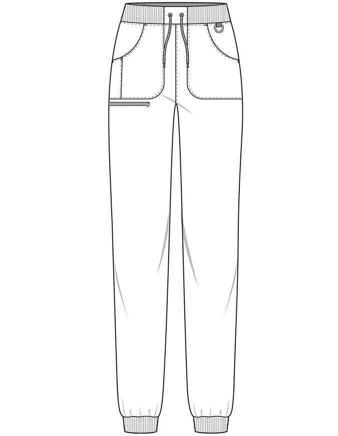 This Missy fit mid-rise jogger is designed for functionality and comfort, featuring a reinforced rib-knit waistband with adjustable drawstring, d-ring, and back locker loop. Five pockets provide secure storage, including a zipper cargo and pen slot. Rib-knit cuffs, a tapered leg with 8 5/8" opening, and a 29" inseam ensure a polished, professional fit.