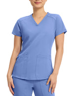 Stay stylish and comfortable with this popular scrub top featuring a flattering V-neck and overlapping rib-knit side panels for added flexibility. Designed with function in mind, it offers two roomy patch pockets, a zipper pocket with pen slot, and an accessory loop. The elongated back makes it perfect for untucked wear. Back length: 27".