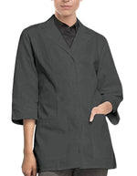 Sleek, slender and functional! The 30-inch women's lab coat by Panda Uniforms features a modern, classic fit, 3/4th sleeves with notched cuffs to keep you secure while you work on your shift. More so, the princess seaming for smooth shaping, two patch pockets for organized storage and side vents for ease of movement make this lab coat a must-have. The center back belt with button detail completes the look and enhances the feminine fit.