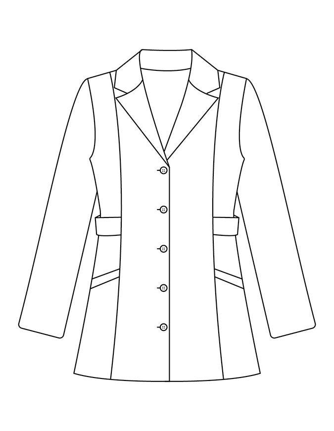 • Two front angled pockets, front princess seaming, back yoke, back belt and center back vent