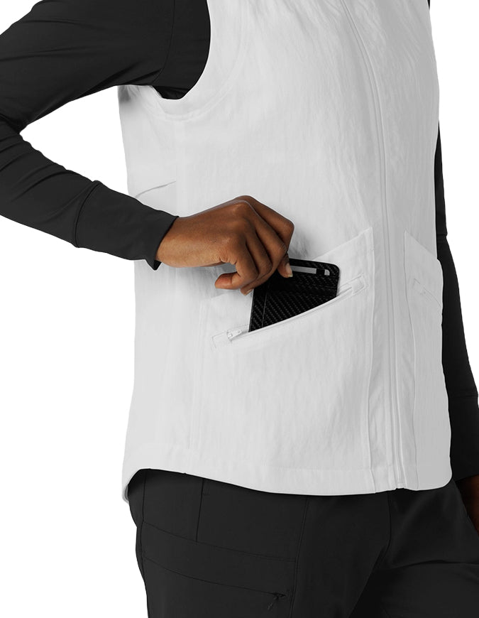 Stay light, warm, and organized with this women's scrub vest—designed for comfort and function. Crafted from lightweight polyester, it adds just the right amount of warmth without bulk. Multiple pockets provide space for everything from pens to sanitizer to small essentials. A convenient shoulder badge loop keeps your ID visible and secure.