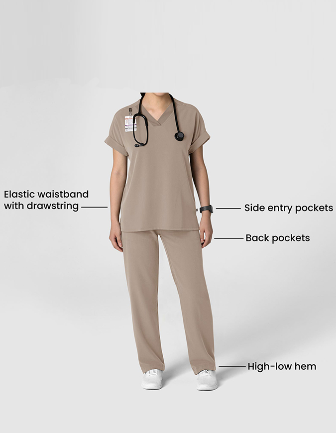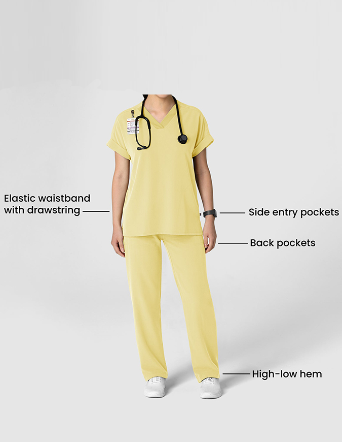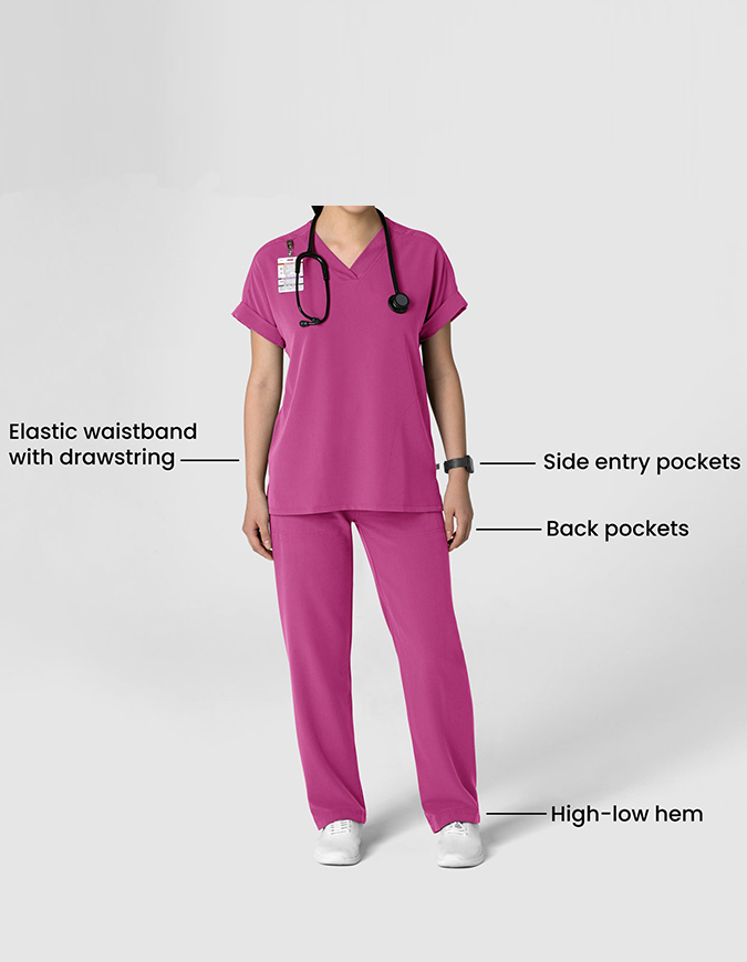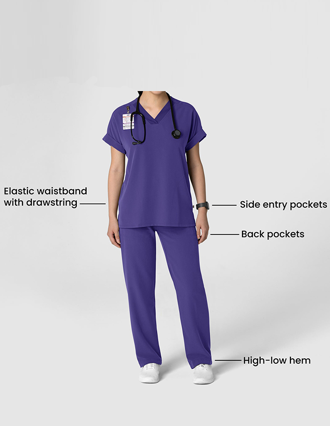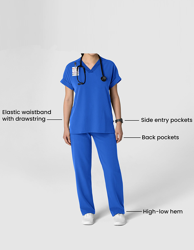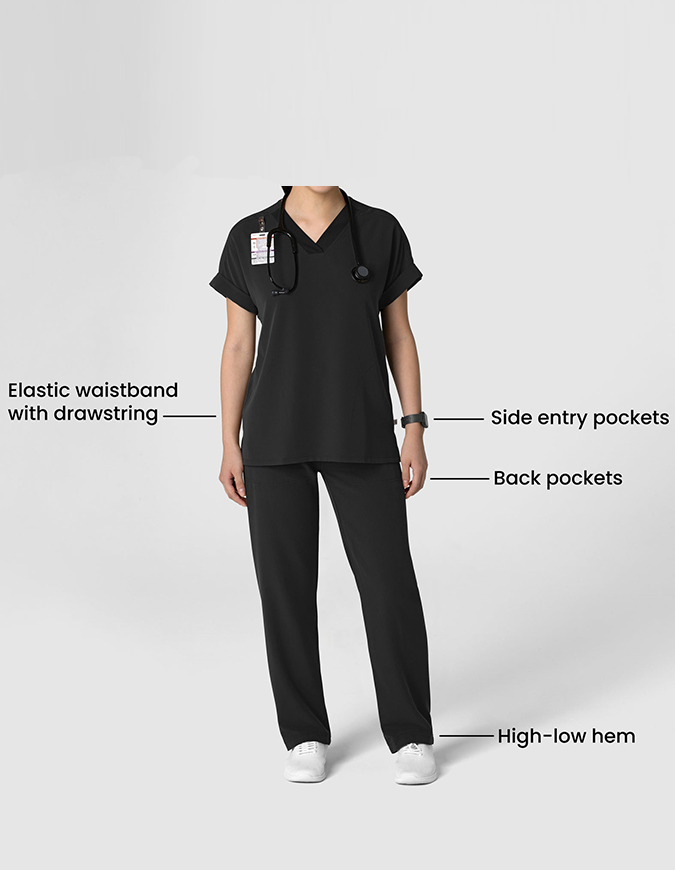 Elevate your everyday uniform with the Wink Nova Women’s Stovepipe High-Low Hem Scrub Pant—where comfort meets conscious design. Made from a lightweight, breathable recycled poly-blend, these eco-friendly scrub pants offer all-day flexibility and movement for busy shifts. The modern stovepipe silhouette and high-low hem deliver a sleek, polished look without sacrificing functionality. Ideal for healthcare professionals who care about both performance and the planet.